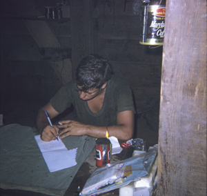 But the “big picture” was always there, lurking in the background—especially when we came home. The country was deeply divided over the war, though it wasn’t always easy to know who was on which side, or even what the sides were. I remember one incident that occurred soon after I returned to the U.S. My wife Pam had flown to meet me in Laguna Beach, California, where some of us were housed in a civilian motel because of overcrowding at the El Toro Air Base. We went to a local bar. After a while, I began to feel uncomfortable because I was one of the few short-haired men in the place—a telltale sign I was in the military. So we went back to the motel to look at some slides I had taken in Vietnam (this is the first time I was able to see the undeveloped film I had mailed home). Then there was a knock at the door, and when I opened it, a long-haired hippie was standing in front of me. He had been looking through the gap in the curtains, which we had intentionally closed, and asked if the pictures projected on the wall were of Vietnam. I assumed we were about to have a confrontation. Instead, he asked if he could come in. “I just got back from there myself not too long ago.”