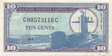 Military Payment Certificates, commonly referred to as MPC, was a form of currency printed by the U.S. Government and used to pay U.S. military personnel deployed to certain foreign countries. It was used in different areas from a few months after the end of World War II until a few months following the end of U.S. military involvement in Vietnam – from 1946 until 1975.